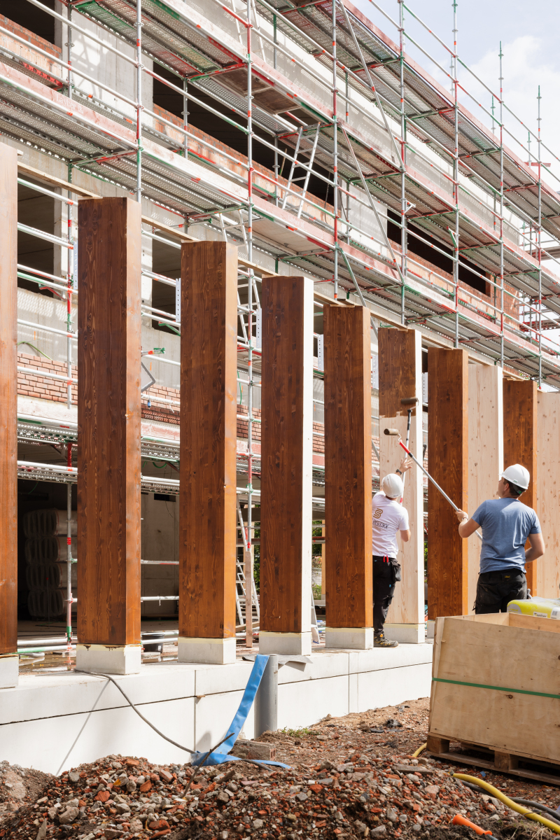 In addition to the adaptive reuse of the church, the project includes a newly built volume, also conceived as a skeletal structure with a fixed core and ready for future reprogramming. The new building echoes the massiveness of the church in a contemporary architectural language, with red-brown brickwork, a balanced composition of open and closed façades, and a reinterpretation of pitched roof forms. Its placement is guided by the preservation of the valuable tree stock in the presbytery garden, which is reinforced as a green stepping stone within the village fabric. Limited to a maximum of three storeys, the new volume affirms its public character without undermining the dominance of the church.